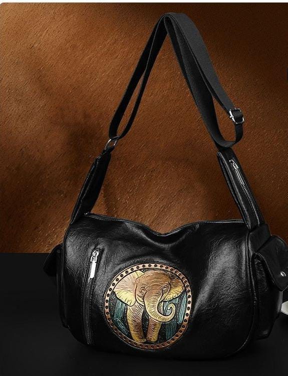 Elevate your everyday style with this sophisticated black shoulder bag, featuring a vibrant embroidered elephant patch that adds a touch of artistry and charm. Crafted with sturdy shoulder straps for all-day comfort and a spacious front zipper pocket for easy access to your essentials, this bag seamlessly combines functionality with eye-catching design. Ideal for daily use, the generous size accommodates your wallet, phone, and more while the timeless black color matches any outfit. Treat yourself or gift someone special to this unique statement piece.