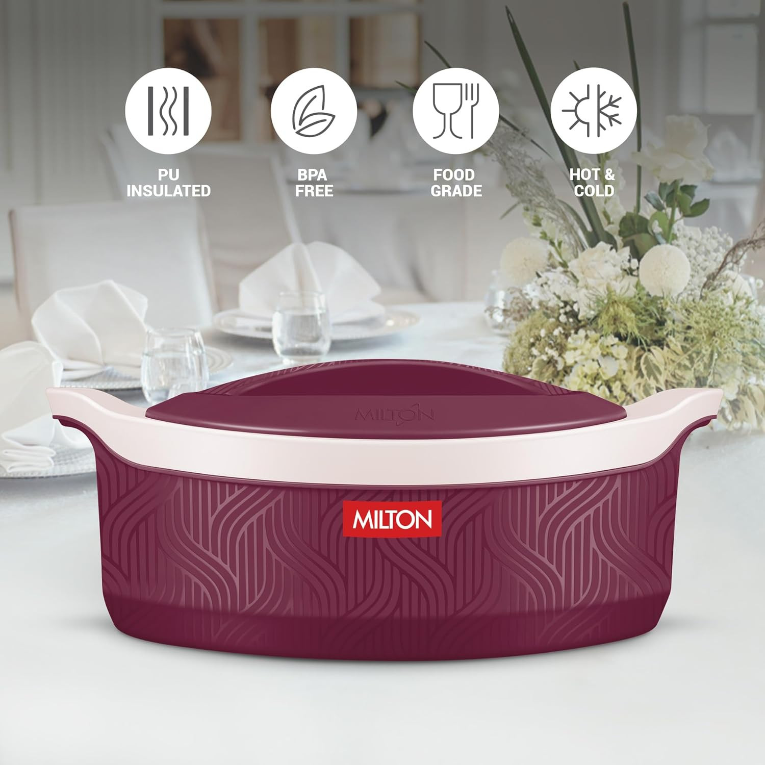 • PU Insulated Inner stainless-steel casserole keeps food hot and fresh for hours. Unique design, elegant shape and premium matt finish adds a hint of royalty to your dining and enhances your dining décorum and thus makes it a must-have casserole for your home.