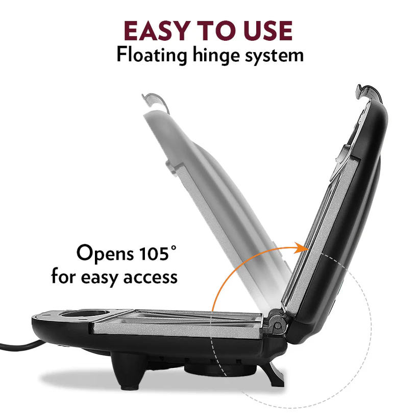 • Non-stick coated plates make it easy to clean and use less butter/oi