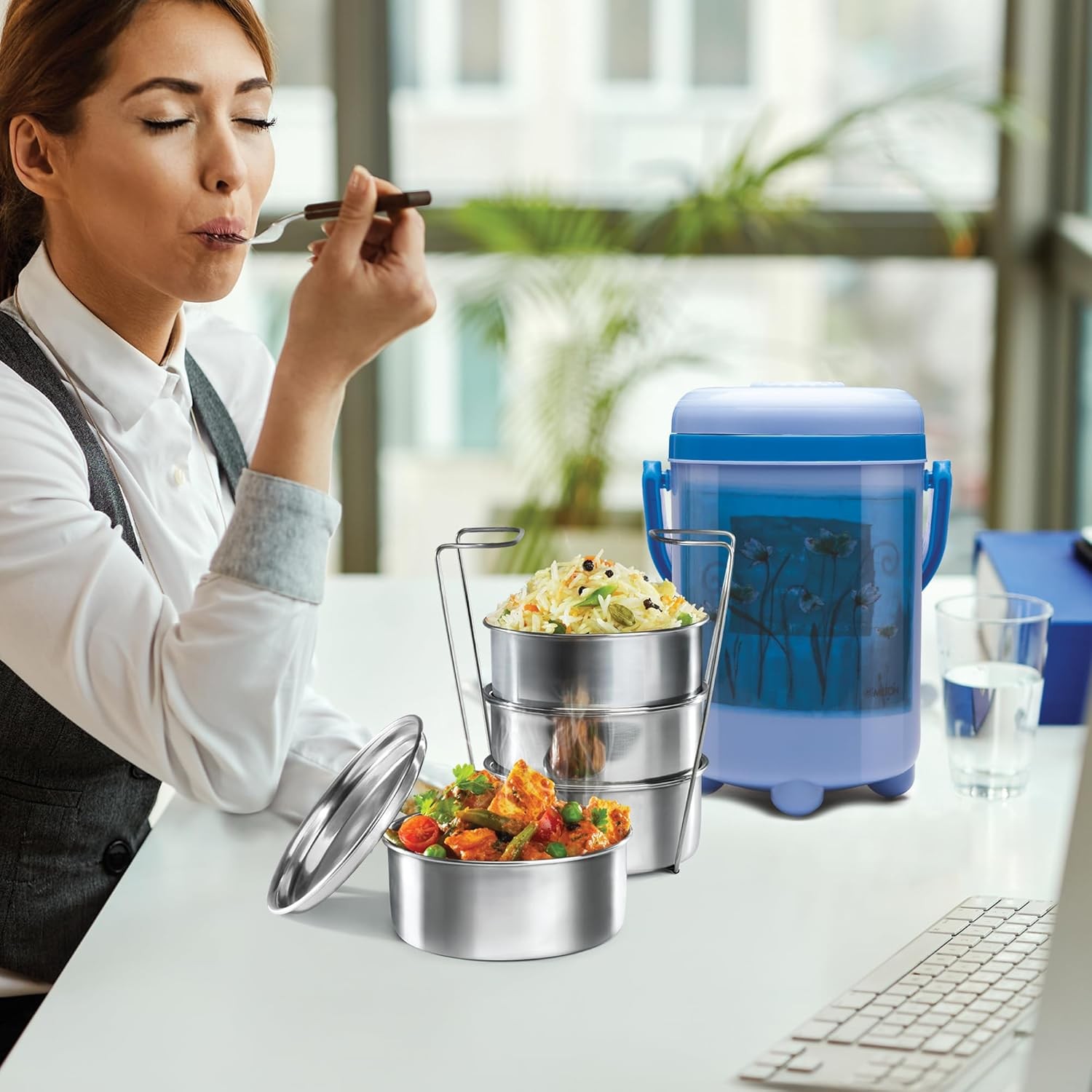 KNIGHT 3040ML 4 CONTAINER TIFFIN BLUE (AM-KN4C3040BL529-BM)