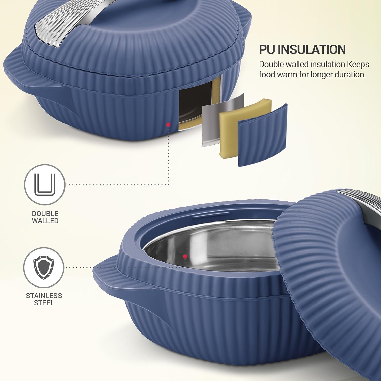 • PU Insulated Inner stainless-steel casserole keeps food hot and fresh for hours. Unique design, elegant shape and premium matt finish adds a hint of royalty to your dining and enhances your dining décorum and thus makes it a must-have casserole for your home.
