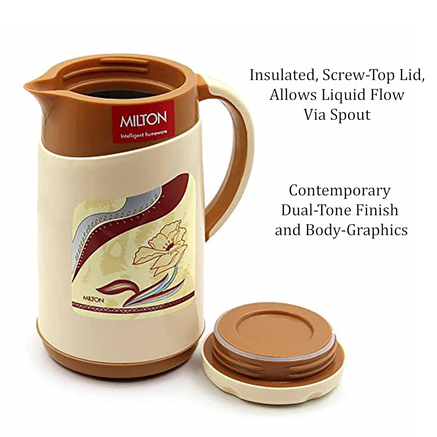 • Contemporary dual-tone finish and body-graphics, wide-mouthed for easy filling and cleaning. It is BPA free, Leak proof, odour proof and light weight. Fill the Jug upto the brim. This ensures maximum heat retention. Pre-condition Jug with hot water if using for HOT beverage and cold water if using for COLD.