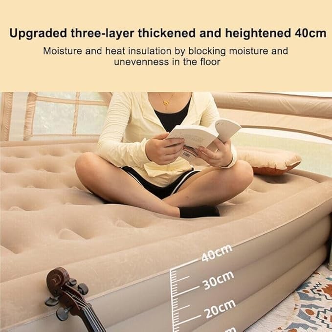 • Bhujry Single Air Bed, Inflatable Bed with Built-in Electric Pump, 3 Mins Quick Self-Inflation/Deflation Guest Air Mattress, Blow Up Bed for Home Portable Camping Travel