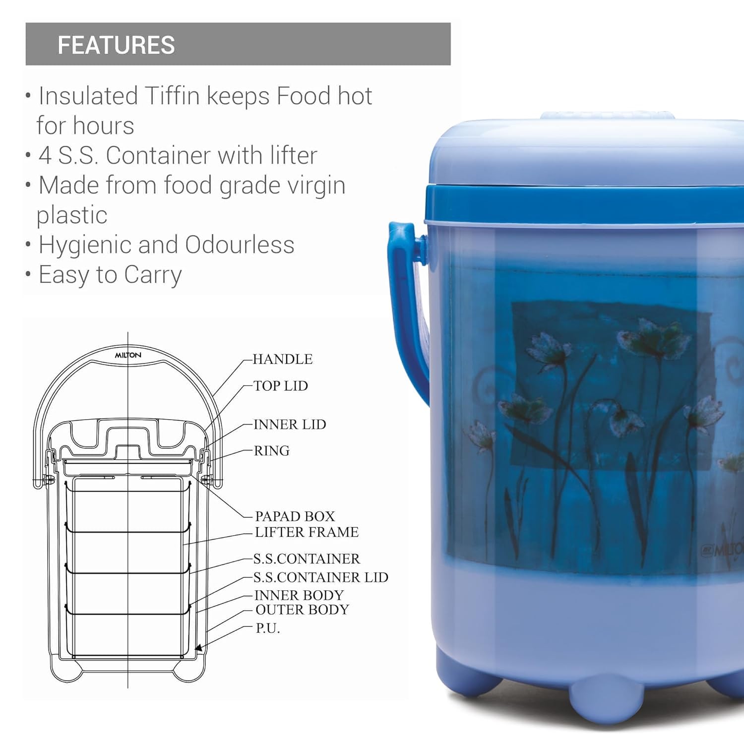 KNIGHT 3040ML 4 CONTAINER TIFFIN BLUE (AM-KN4C3040BL529-BM)