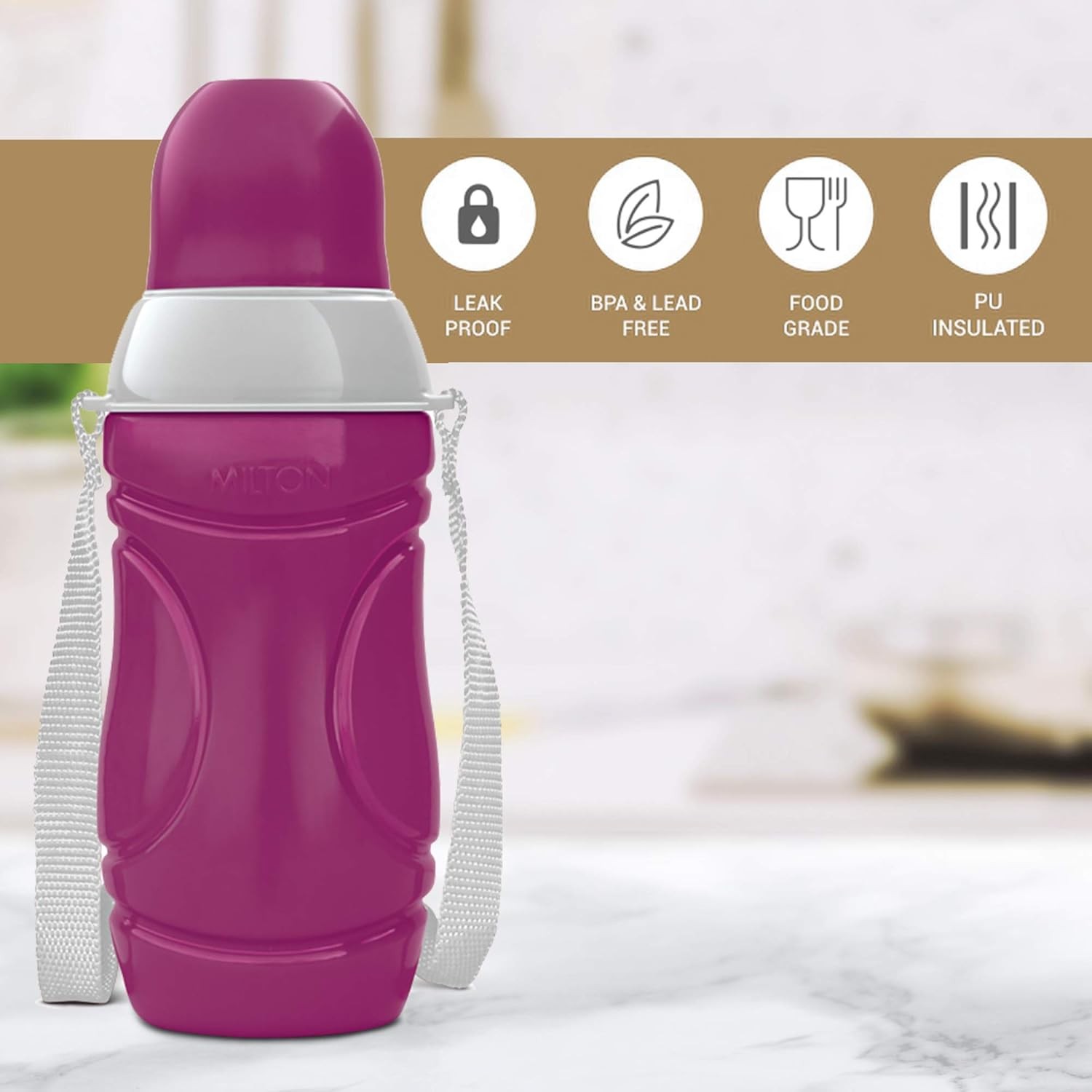 Milton has launched a new PU insulated school water bottle. The bottle has a rust-free steel inner body and is 100% BPA free. Designed for kids with a leak-proof lid, hands-free sipper, and attractive colors. Can be used for hot or cold beverages. Easy to clean.