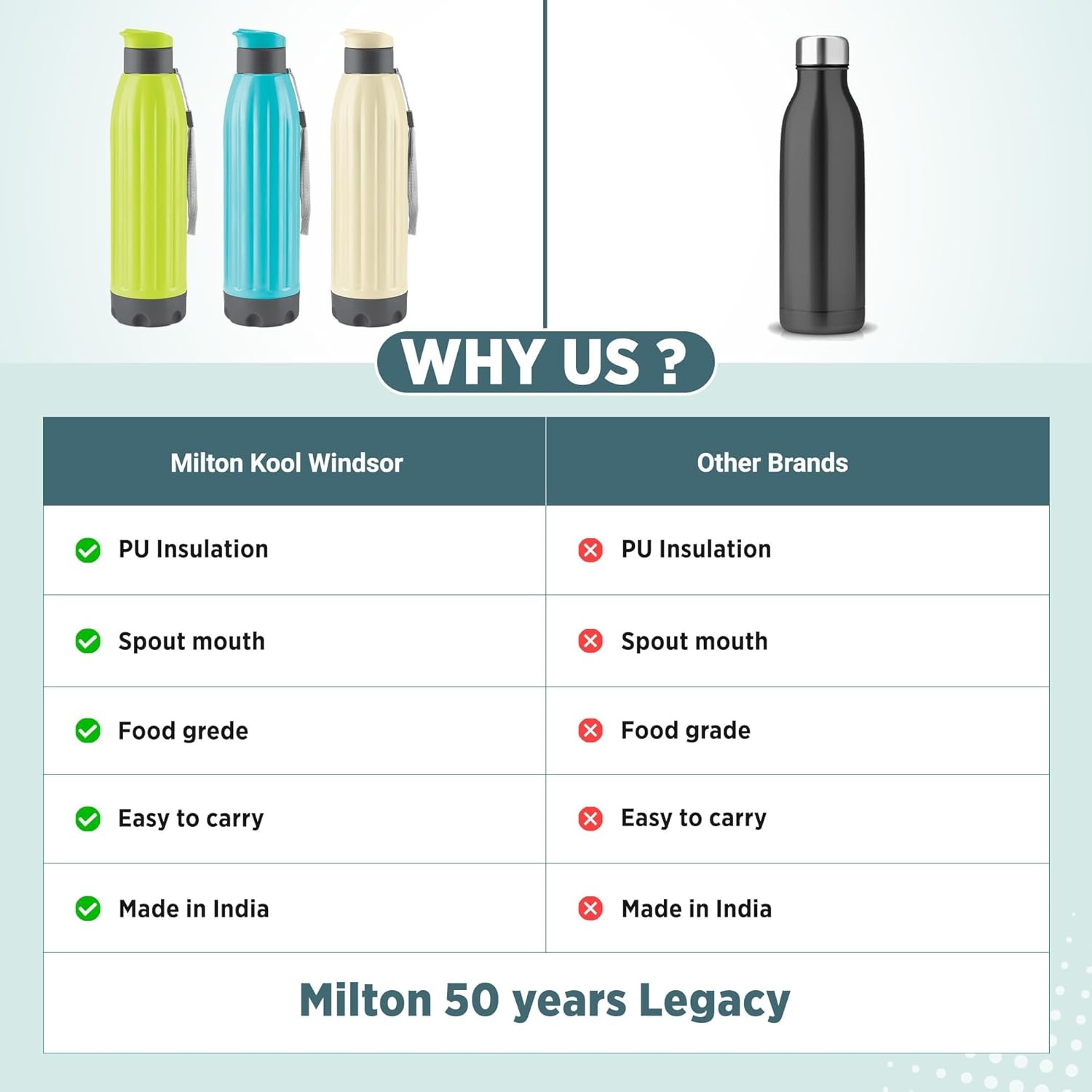 • 50 Years of Indian Innovation: Milton water bottle has advance PU insulation to maintain your drink’s cold for extended periods