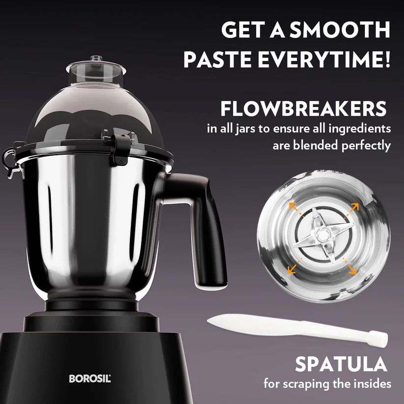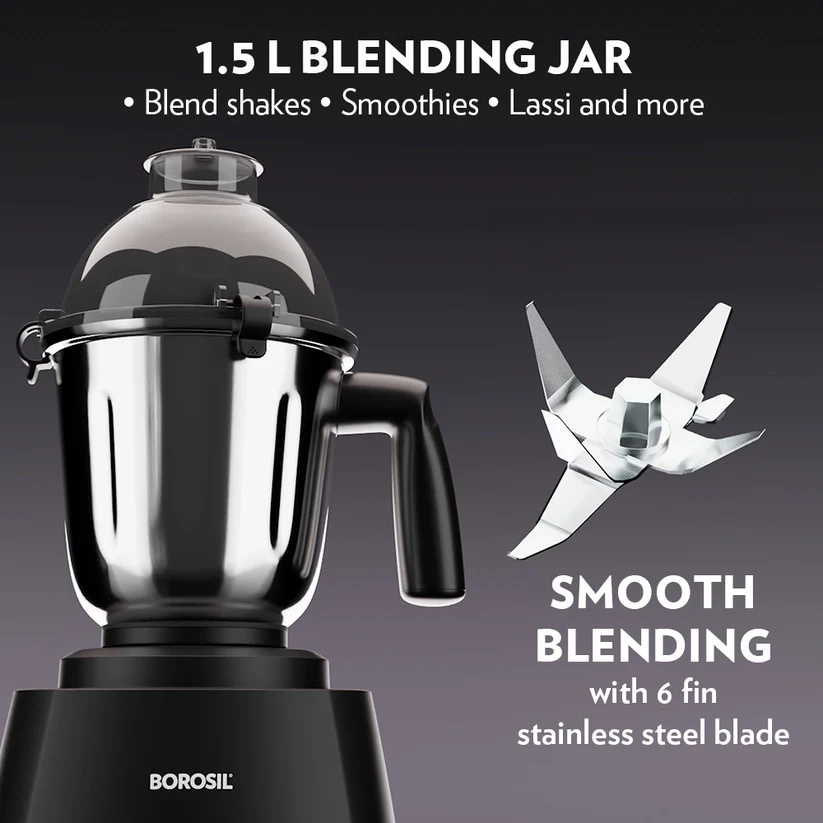 - 1.5 L blending jar with clip locking