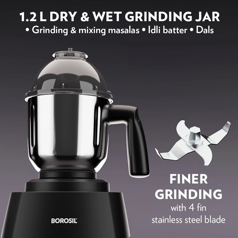 - 1.2 L dry / wet grinder with clip locking